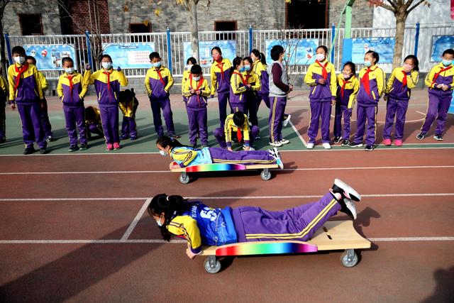 最热闹的就是冬残奥会模拟竞赛项目的比拼,全校308名学生们通过冰雪运动旱地化项目的方式,模拟体验了单腿跳打冰球、单臂滑行雪车、单腿滑滑轮等8项冬残奥会比赛。赛场上,单腿跳动打球很难保持平衡,不少学生一次次跌倒,再一次次爬起继续比赛。单臂滑动雪车项目中,模拟雪车很容易偏离赛道,学生们卖力地用单臂矫正方向,累得满脸汗水,坚持滑过终点。活动中,学生们倾情投入,分组上阵,在竞技中变得强壮、在体验中获得成长、在游乐中赢得欢笑。